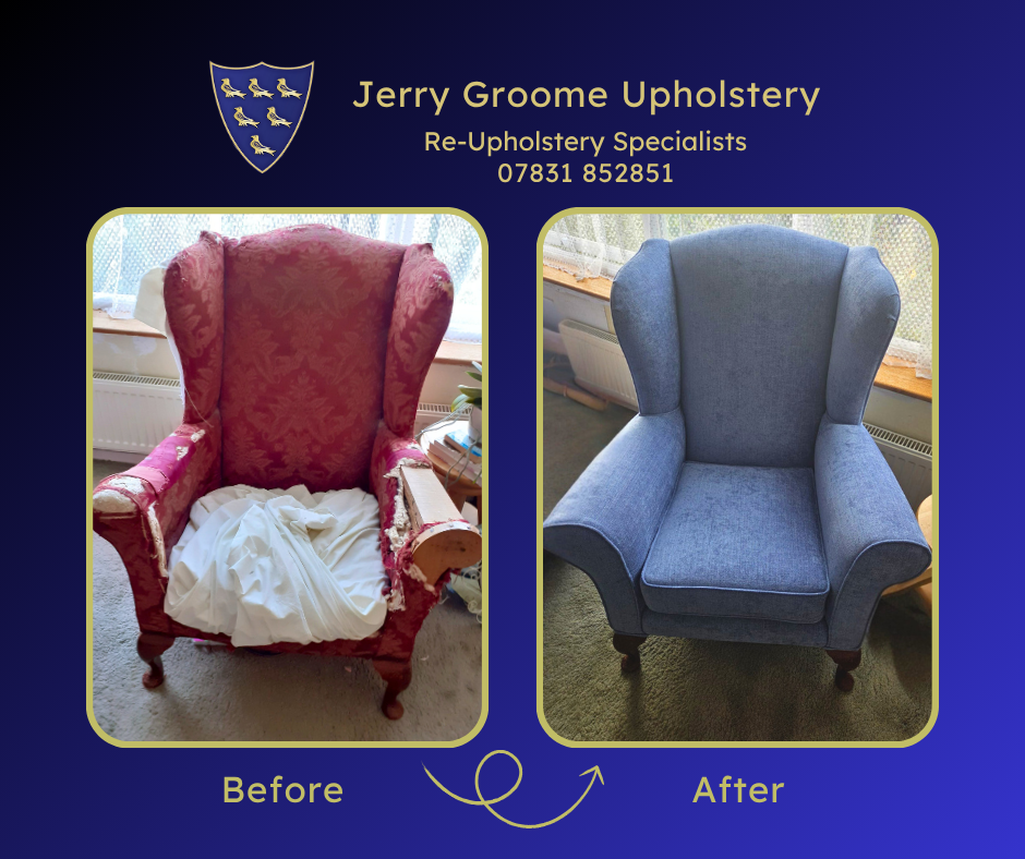 Jerry Groome Upholstery are experts in the repair and restoration of upholstered furniture. Based in Chichester, we cover a large area and pride ourselves on our personal and friendly service. We offer free estimates in the comfort of your own home, we’ll bring samples for you to select from our large range of fabrics, and we offer a full collection and delivery service.